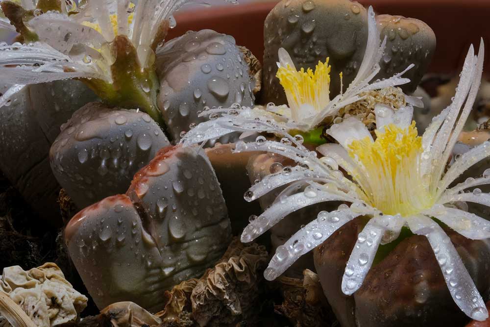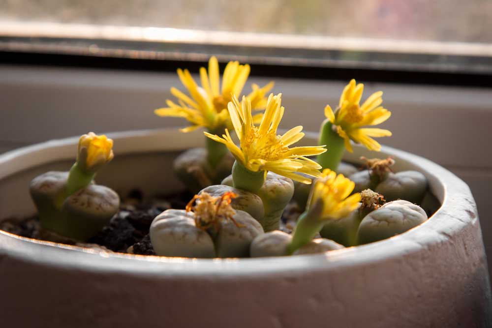 Поскольку это растения коллективные, то высаживать их лучше вместе – поодиночке они начинают чахнуть. Цвести литопсы начинают на 3-5 год, происходит это обычно не раньше середины августа.