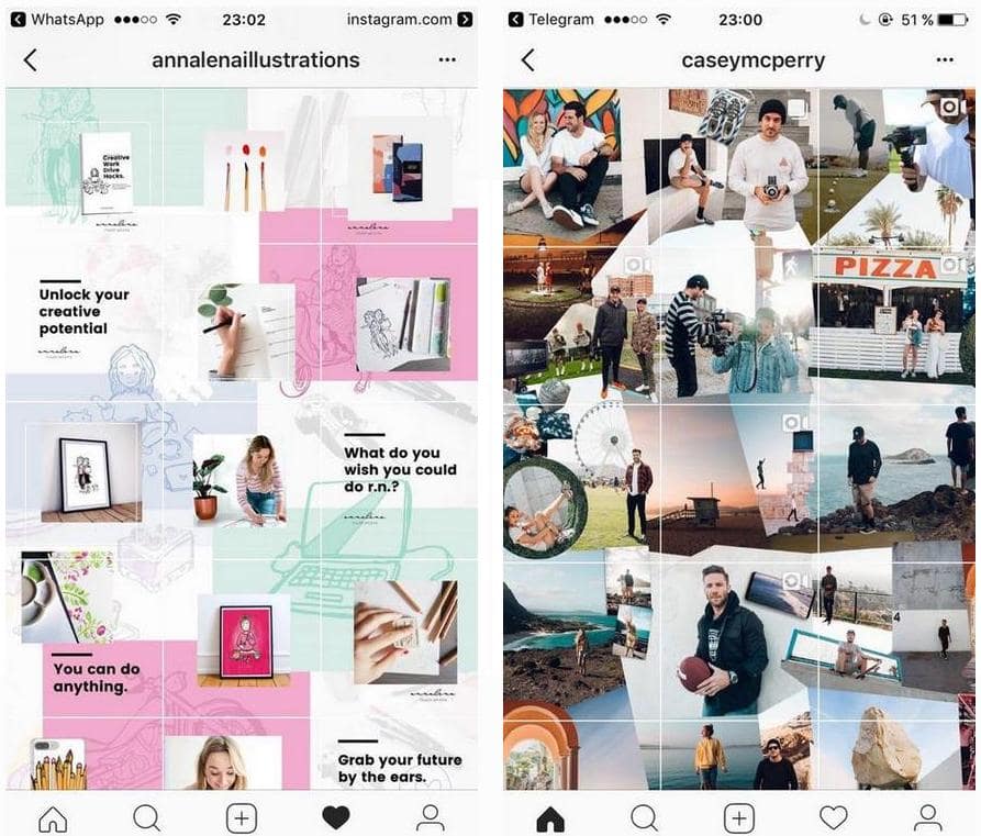 Таким же образом можно применять сетку, создавая вертикальный и диагональный стили оформления инстаграма.