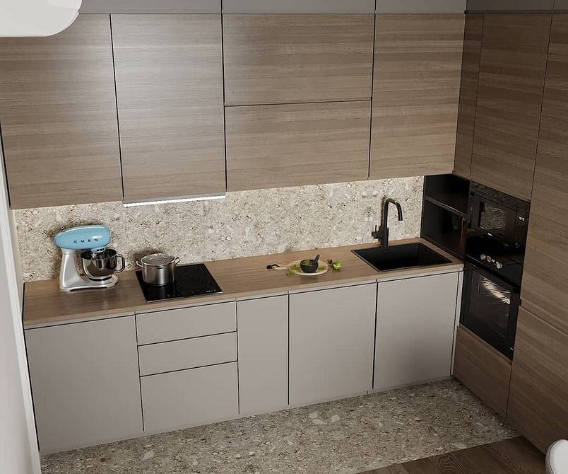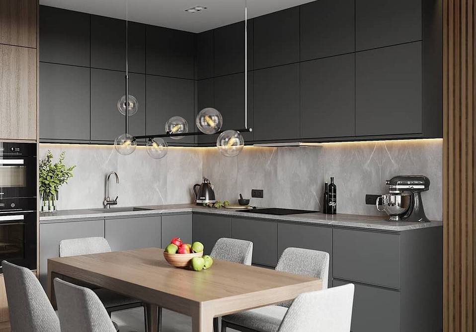 - Требует хорошего качественного освещения рабочей поверхности. Для этого понадобится верхний свет и точечные светильники или длинные лампы, расположенные под верхними шкафами. Если таковых нет, то светильники можно расположить на стене.
