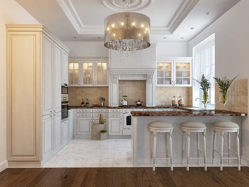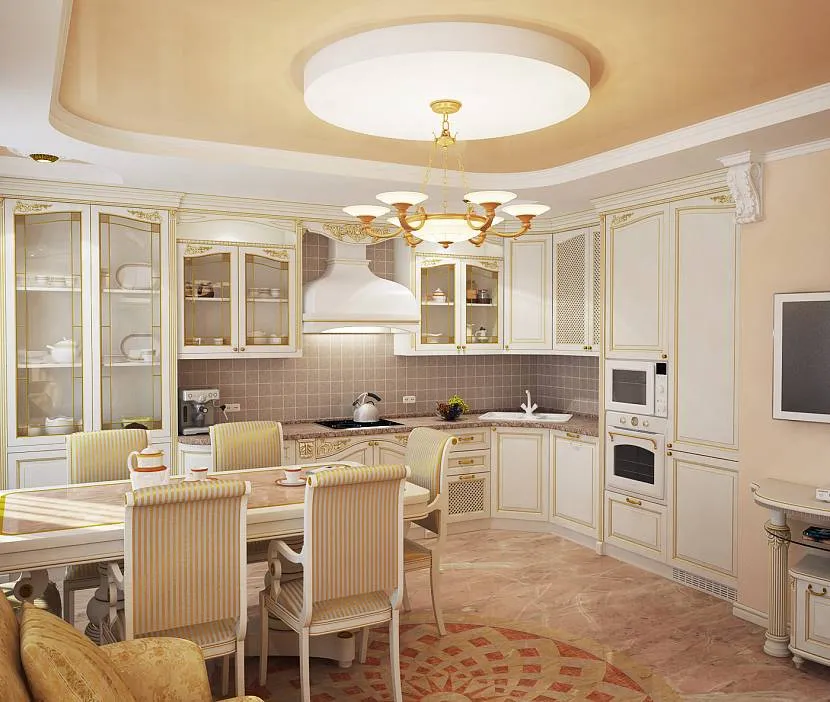 Отделка бежевой кухни: выбираем стиль, потолок и столешницу
