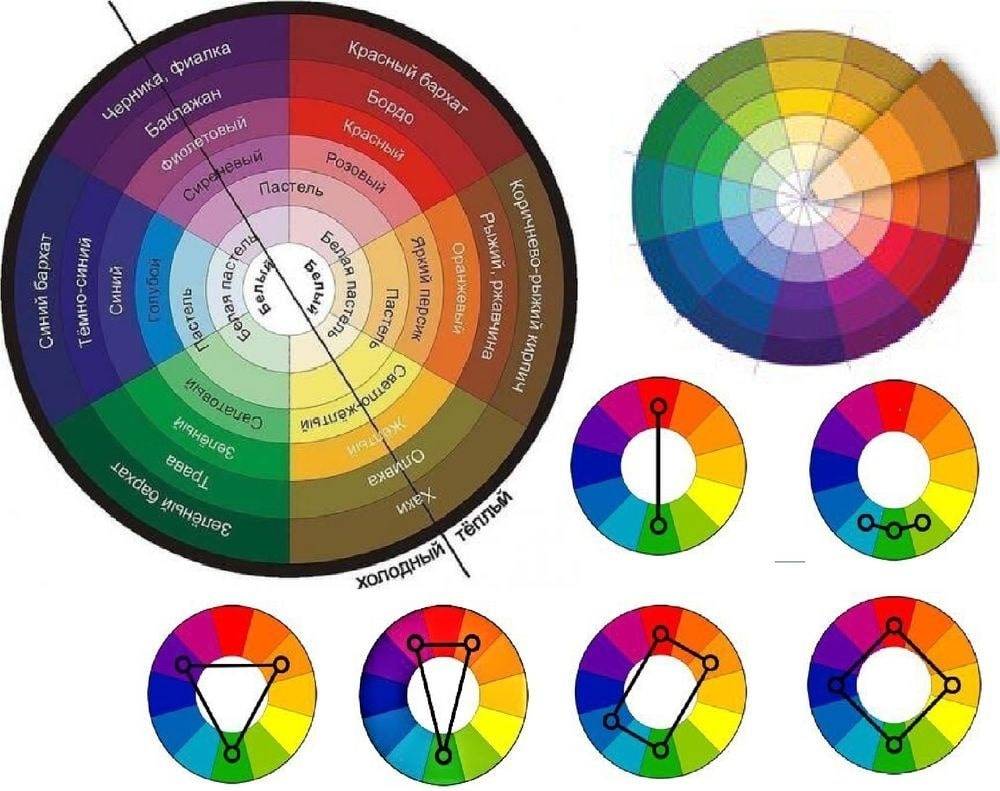 С помощью цветового круга можно создавать разные варианты оформления интерьера.