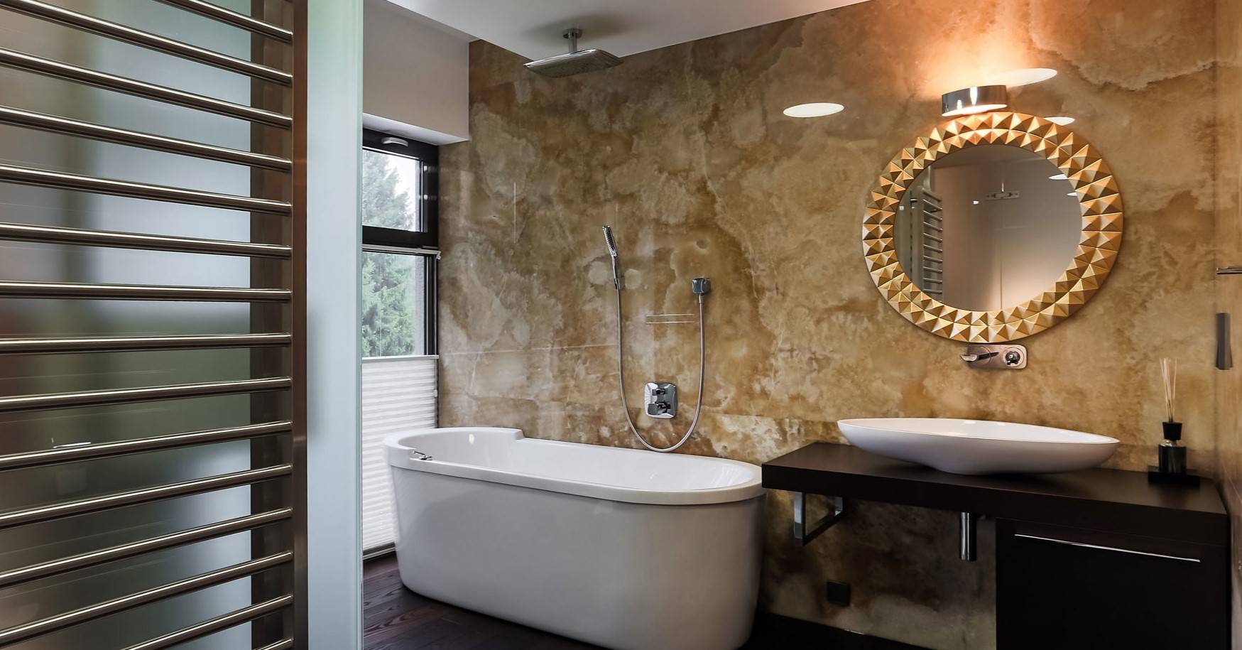- травертин устойчив к влаге, пользуются популярностью для декорирования ванных комнат;