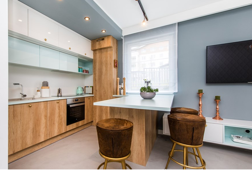 Деревянные акценты годами не выходят из списка самых горячих кухонных бестселлеров! Независимо от того, являются ли они кухонными столешницами, мебельными фасадами или досками для пола – дерево всегда приветствуется на кухнях! Иногда они представляют собой необработанные элементы, полные трещин и сучков, иногда гладкие поверхности, характеризующиеся красивым, живописным рисунком. Древесина на кухне – это фантастическая отделка – она добавляет тепла и уюта в дом. Разбавляет, особенно в минималистском стиле, прохладный, мрачный вид. Кроме того, стоит помнить, что все идеально сочетается с деревом – от кирпича, блестящей плитки до архитектурного бетона.