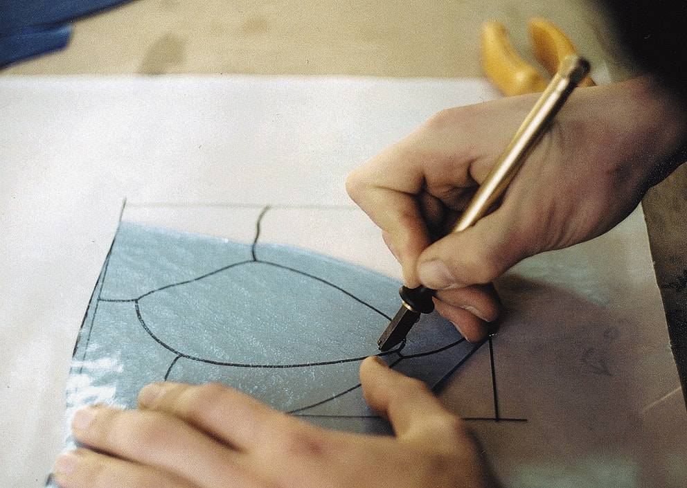 Стекло очищают, обезжиривают со стороны соприкосновения с эскизом и тщательно вытирают.