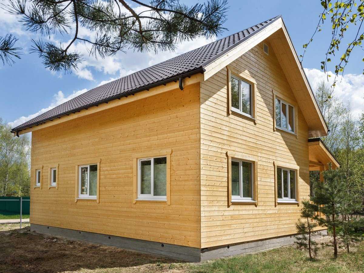Имитация бруса по своей сути представляет ту же вагонку, только изготовленную большей ширины и толщины. Производители предлагают этот материал различных размеров. Его ширина может достигать 200 мм, а длина 4 метров. Внешне дом с такой отделкой не отличается от здания, возведённого из цельного бруса.