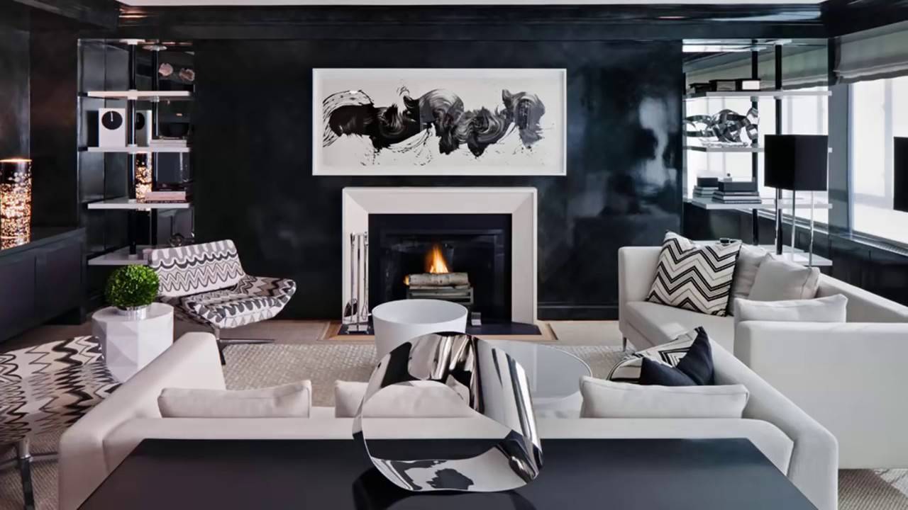 Стоит обратить внимание на представление дорогих вещей в магазинах: золото, драгоценности часто располагаются на черном фоне с хорошей подсветкой, что делает их запоминающимися, придает более представительный вид. По такому же принципу действуют дизайнеры: размещают темный фон и интересные акценты на нем. В качестве последних могут служить светлый камин, музыкальные инструменты, мебель белого цвета изящной формы