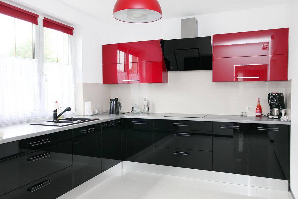 Чёрный с красным — смелый вариант. Оба цвета экстравагантные, а их смешение только усиливает это ощущение. Кухня при этом выглядит ярко и неординарно.