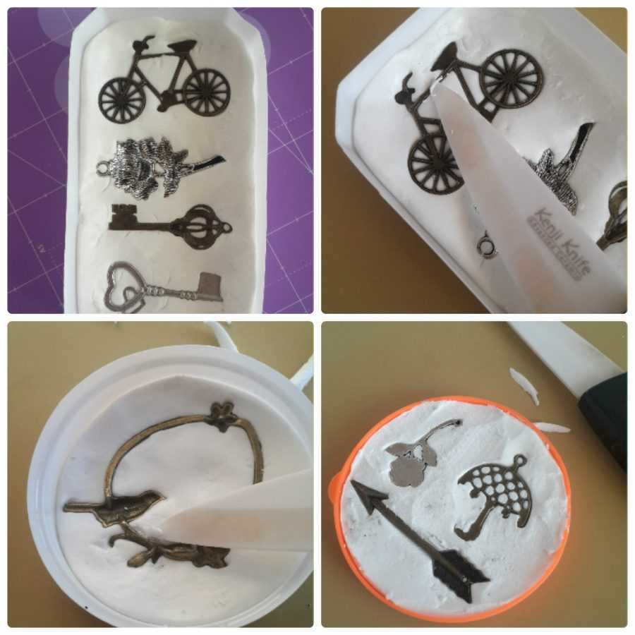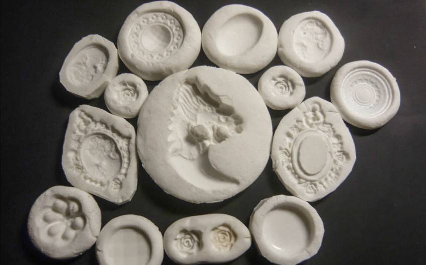 По истечении этого срока из заготовок осторожно достаются нужные предметы и молд готов. Прямо в той же воде из силикона лепится заготовка. Ее достают из воды и вдавливают силикон в предмет для оттиска