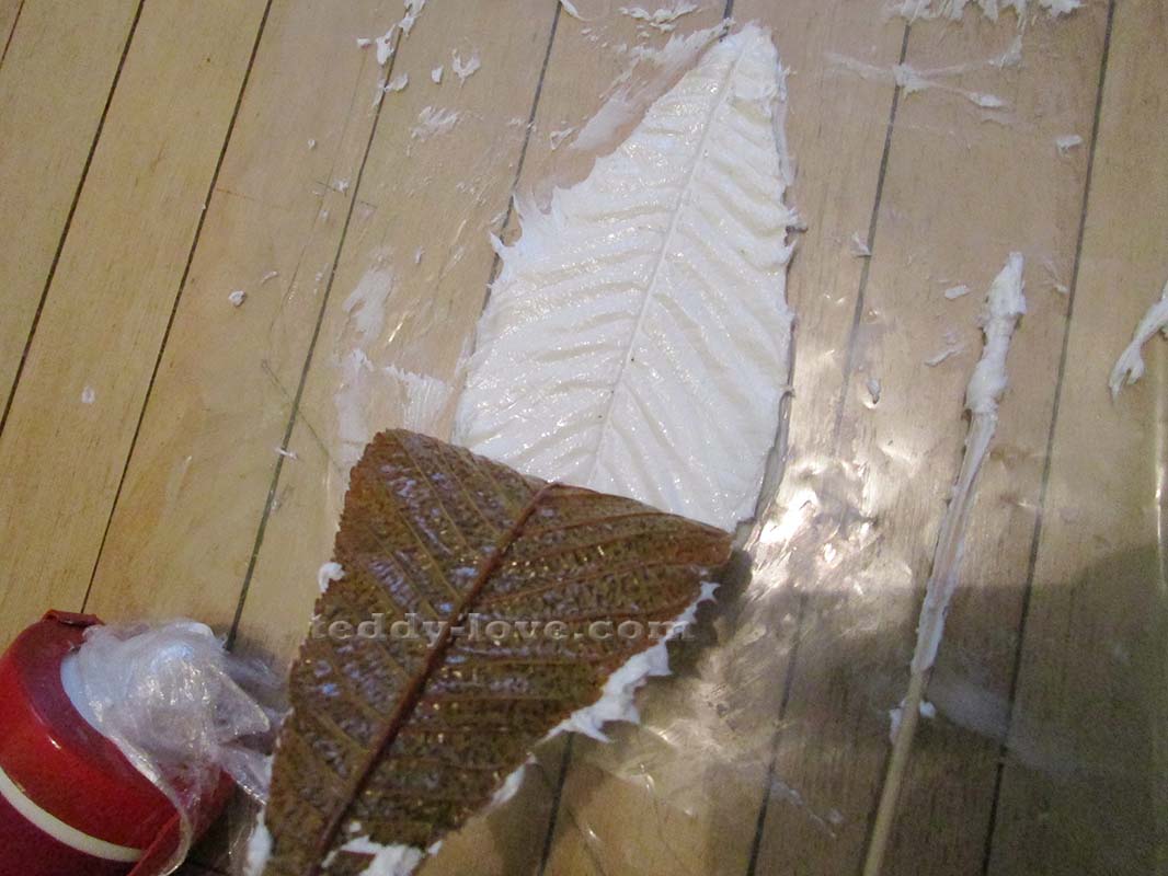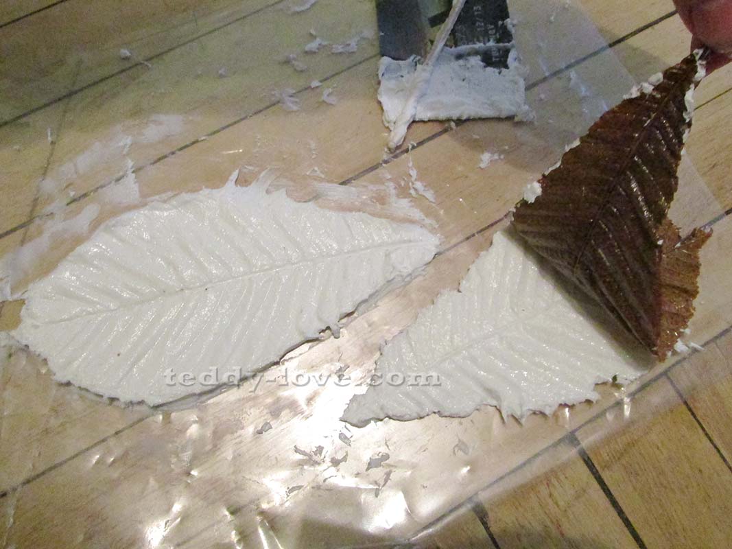 Самыми простыми в создании считаются силиконовые молды для мастики в форме листика. Для этого нам понадобится обычный силиконовый герметик, рельефный лист какого-то дерева и совсем немного терпения.