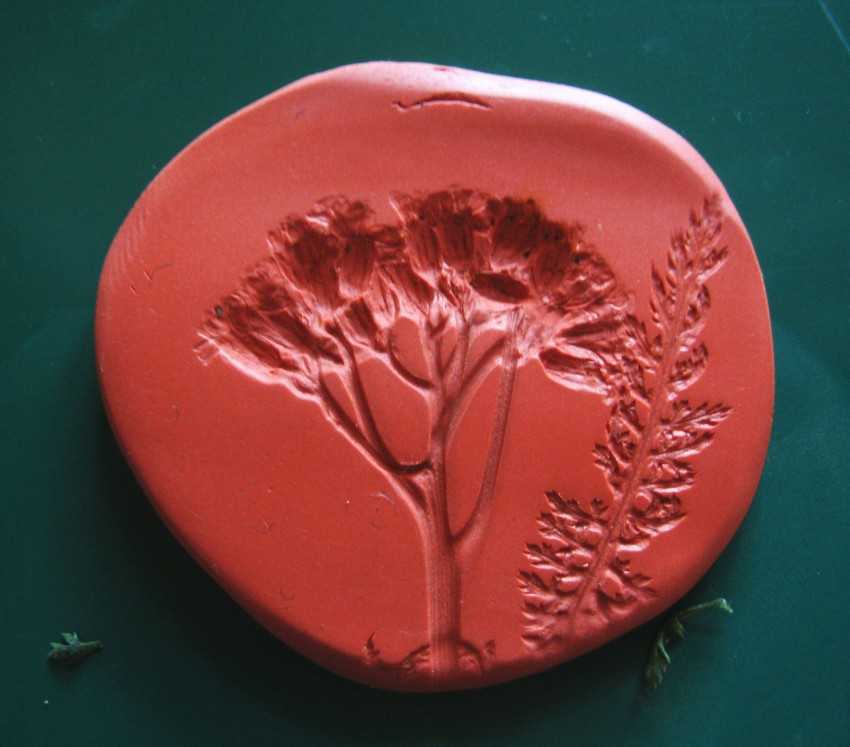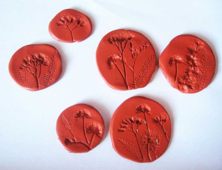 Готовое «тесто» нужно раскатать, но не очень тонко. В раскатанные круги вдавливаются предметы для оттисков и оставляются в таком виде на несколько часов