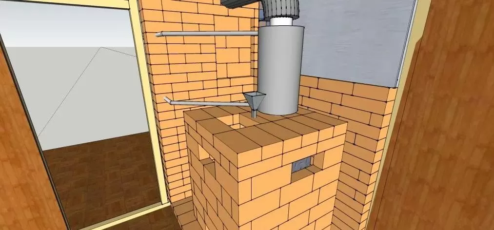 - В двух листах минерита вырезают отверстия соответствующие по размерам топки и саморезами закрепляют их со стороны парной.