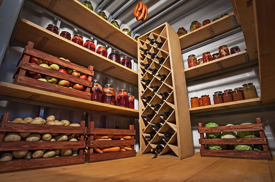 - Если нужно создать складское помещение для садоводческого, спортивного инвентаря, стоит рассмотреть возможность размещения полок, шкафов на трех стенах. Часть помещения может использоваться для мастерской, хобби.