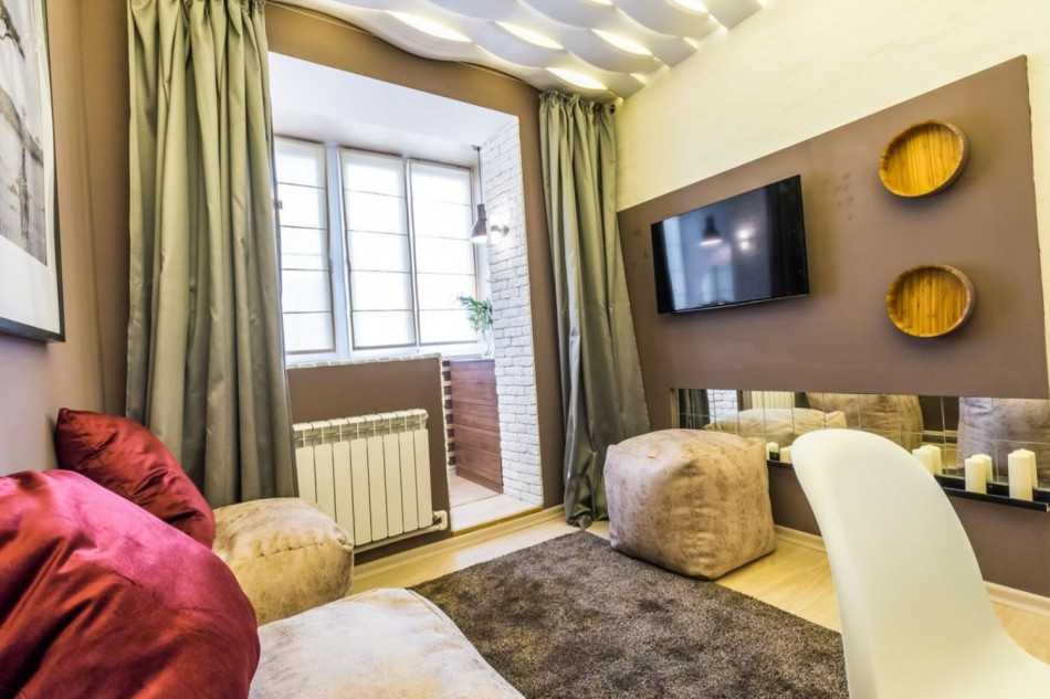 Маленький балкон в хрущевке или доме эпохи Горбачева легко на самом деле превратиться в место для оздоровления. Ещё, на балконе можно аквариум с рыбками разместить. Рыбок, правда, не захочется оставлять в одиночестве надолго. Балкон придётся совместить с квартирой, убрать дверь, сделать красивую арку, возможно.
