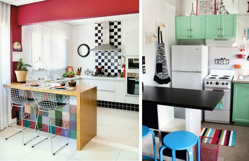 Барная стойка для кухни. Неплохое решение для маленькой кухни. В некоторых случаях она может стать отличной альтернативой кухонному столу. При этом она значительно экономит пространство. Удобные стулья для кухни в данном случае могут быть спрятаны под стойку и не занимать лишнее место, ограничивая ваше рабочее пространство.