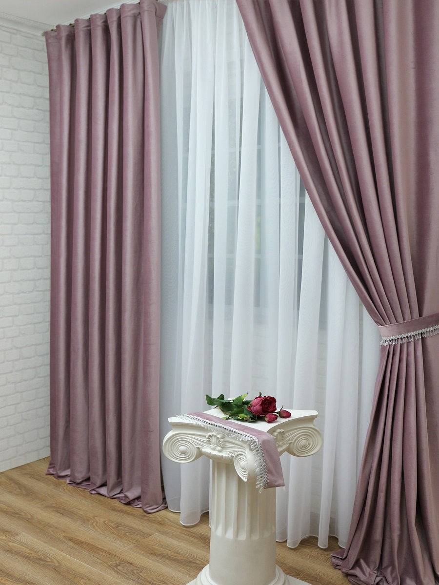 Длинные шторы в пол из плотной ткани защищают от солнечного света, смотрятся изысканно