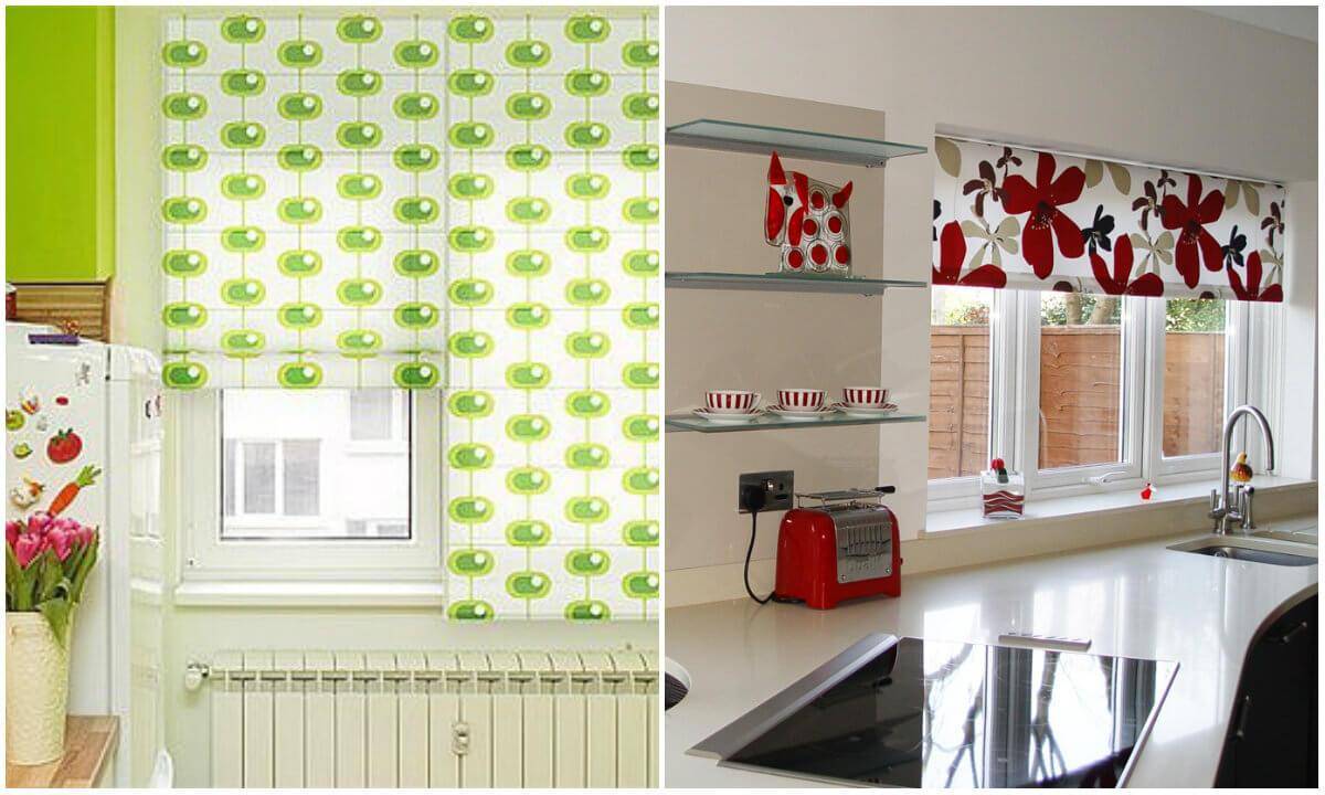 Наматываются при подъёме на валик, монтируемый над оконным проёмом или в верхней части рамной конструкции. Выпускаются из ткани, бамбука, пластика. За счёт эргономичности и компактности подходят для скромных по метражу кухонь.