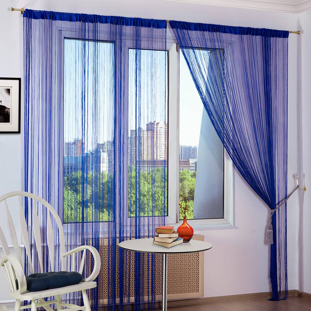 Состоят из множества нитей, спускающихся от потолка до пола. Устойчивы к загрязнению, просты в стирке, надёжно защищают от чужих взглядов.