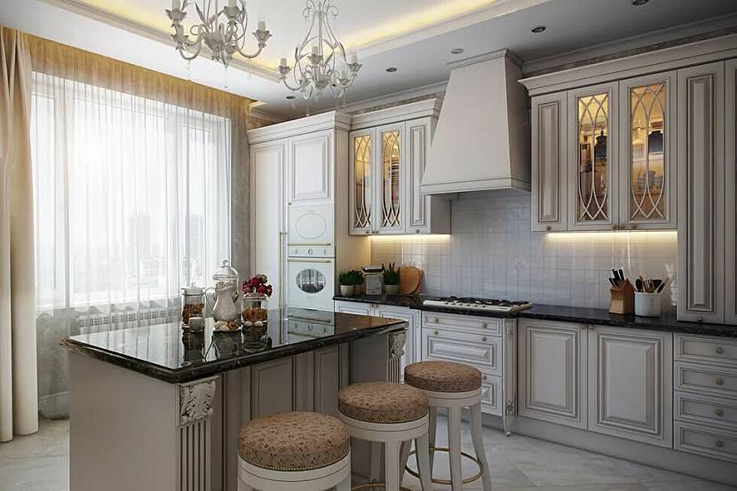 С позиции дизайна кухни – это самый крутой вариант. Но он же наименее практичный и наиболее дорогой.