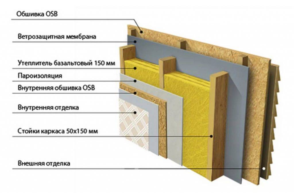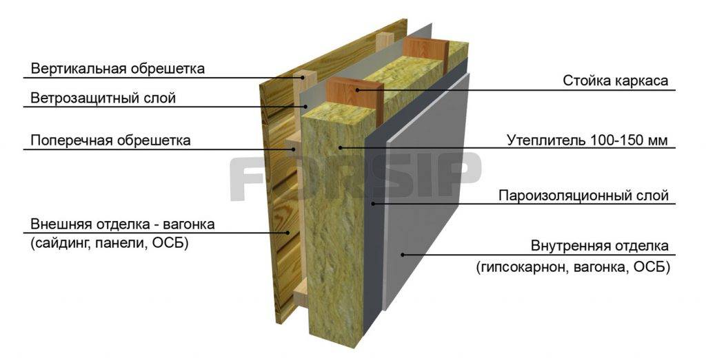 - заполнить промежутки утеплителем, соблюдая правило пароизоляции — каждый последующий слой сооружения должен обладать способностью к теплоизоляции по нарастающей;