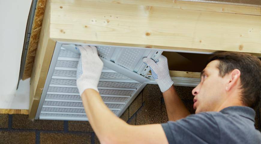 Софиты для подшивки кровли: крепление, фото, схемы Софиты для подшивки кровли: разновидности, размеры, обзор производителей Металлические софиты для крыши — виды и монтаж (фото, видео) Софиты для подшивки кровли — виды и правильный монтаж