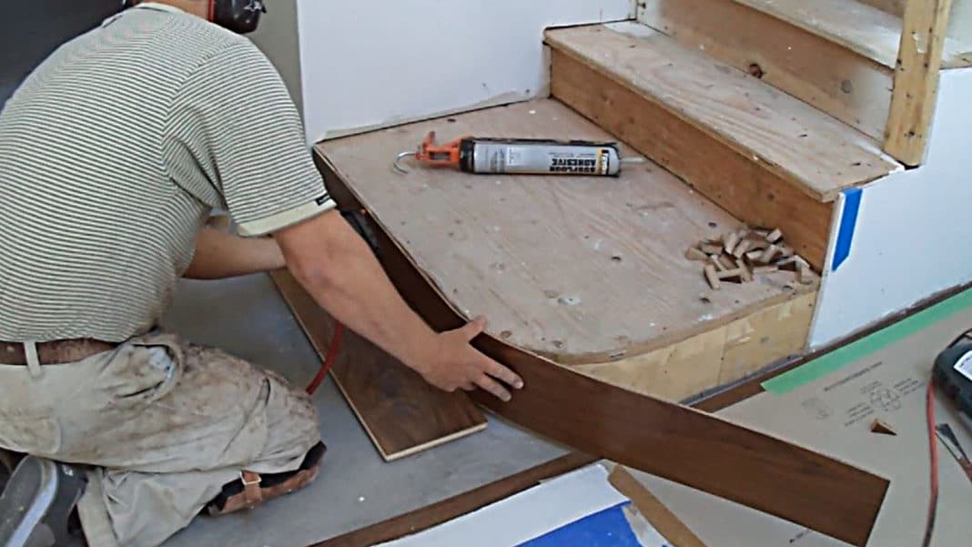 Декорирование ступеней ламинатом производится в несколько последовательных этапов: