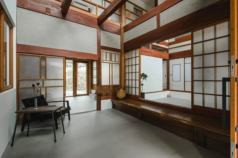 Окон и дверей в традиционном понимании в японских домах нет. Их заменяют тонкие стены на шарнирах. При необходимости они легко снимаются, чем обеспечивают естественную вентиляцию или просто создают большое пространство. Однако двигаются только три стены, поскольку одна все-таки должна оставаться несущей. Также домики в японском стиле изнутри часто разделяют занавесями и ширмами. Они позволяют легко и быстро сделать перепланировку, если понадобится большее или меньшее количество комнат.