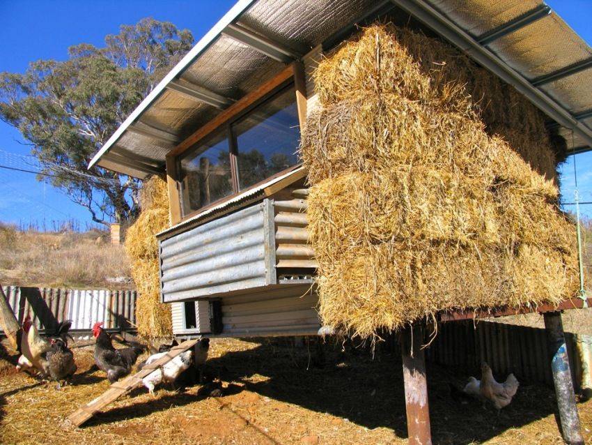 Внешнее утепление стен курятника с помощью соломы