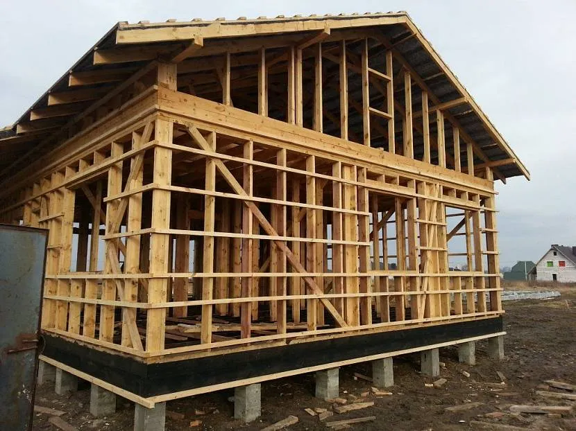 Деревянный каркас дома на опорно-столбчатом фундаментеИсточник strojbum.ru