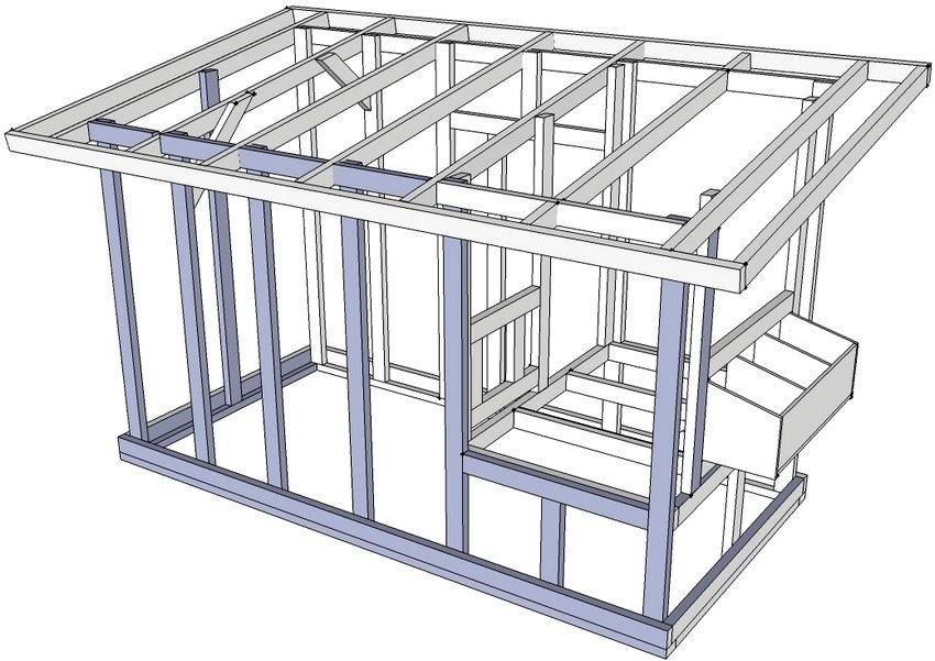 Каркасная конструкция является оптимальной для птичника, так как ее возведение отличается высокой скоростью, а также простотой