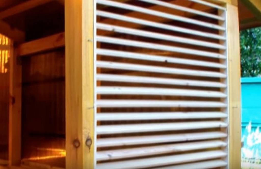 У вас остались стены, которые нужно закрыть, то есть зашить вагонкой. Для декора оконных проемов, лучше всего использовать деревянные жалюзи из рейки 40 на 10 мм. Ещё для этой садовой беседки подойдут двери из рейки. Их можно так же сделать своими руками и навесить на рояльные петли. Внутреннее содержание беседки хорошо бы дополнить лавочками и столом из тех же досок. Своеобразный вариант — обжечь доску горелкой. В результате у вас получится стильный брус, который можно использовать, как для внутренней отделки беседки, так и для изготовления мебели.