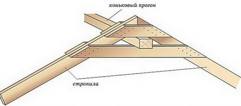 - Для коньковых элементов подбирают материал того же сечения, что и для стропил.