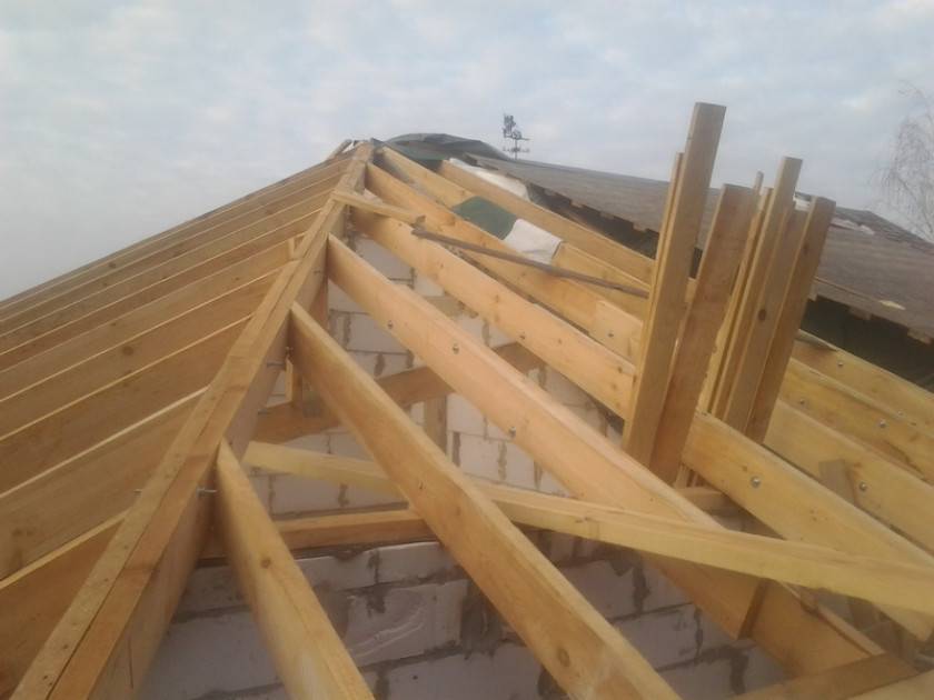 - угловых накосных стропил, соединяющих брус конька и карнизные углы кровли. Являются основными несущими элементами в количестве 4 единиц;