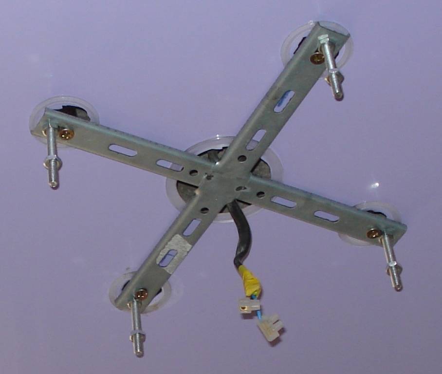 Крестообразное основание для крепления люстры фиксируется с помощью дюбелей и саморезов.