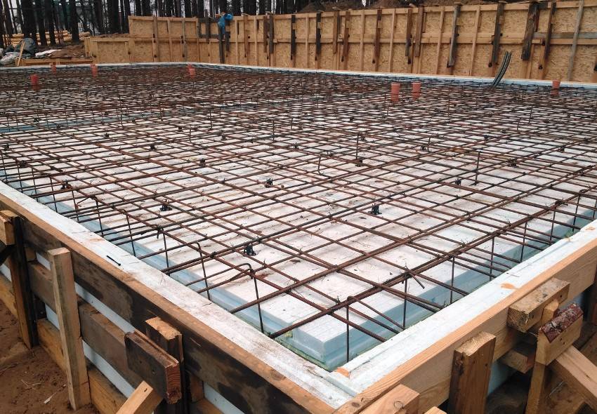 Армирование также выполняется в короткий срок в связи с использованием небольшого количества металлических прутьев. Крепко связанная армированная сетка предотвращает растрескивание бетона, исключает порчу фундамента при естественном движении грунта.