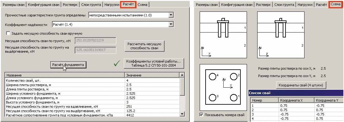 Вычислить величину нагрузки на сваи, можно разделив массу дома на его опорную площадь, что будет выглядеть следующим образом: P/Sсо.
