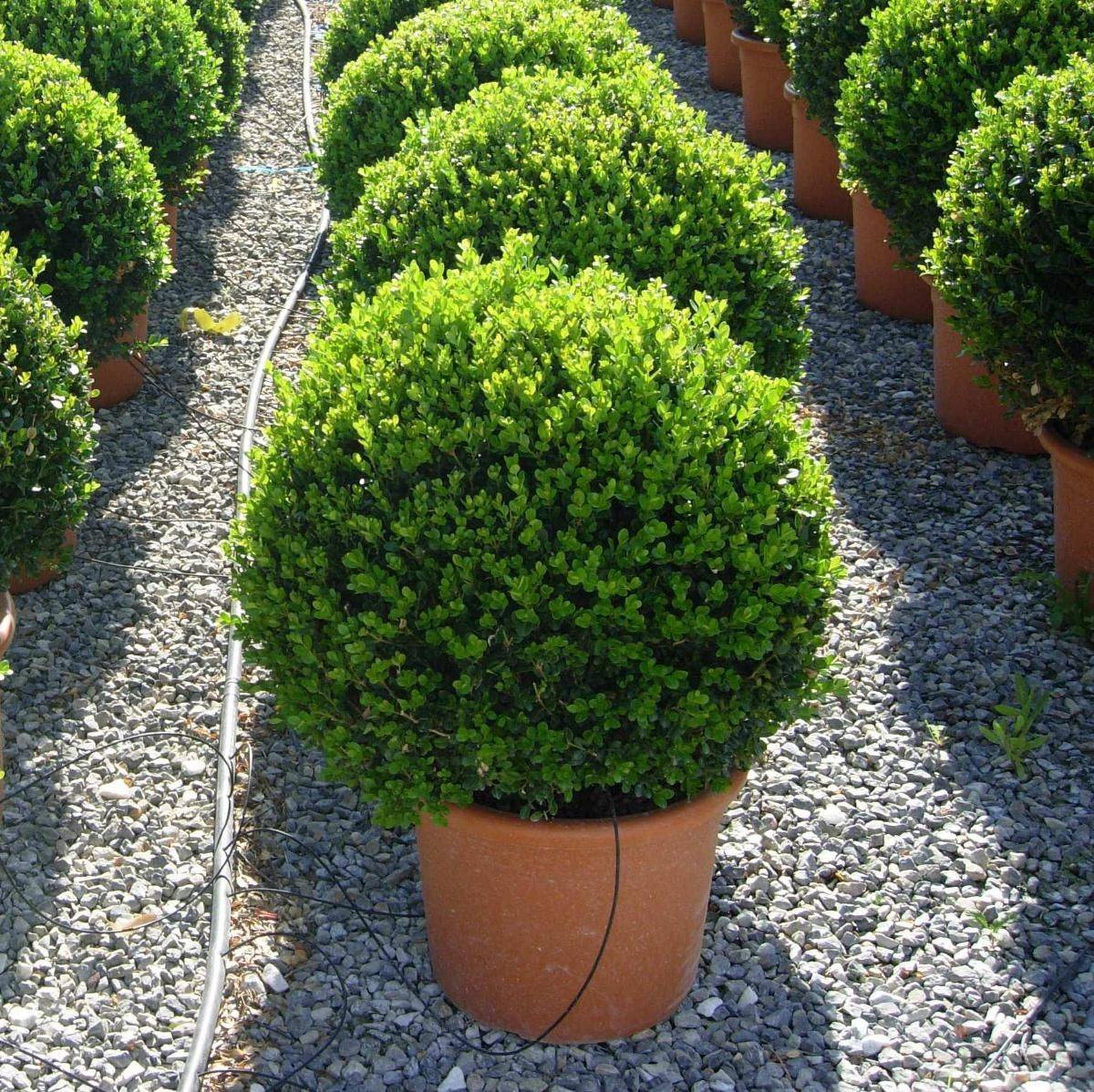 Вечнозеленый самшит хорошо смотрится почти в каждом саду, если его обрезать в форме шара. Растение можно обрезать самим, а можно купить уже сформированный саженец и регулярно подстригать его так же, как это делали в питомнике. Самшит в форме шара отлично смотрится на фоне светло-серого гравия или камней.