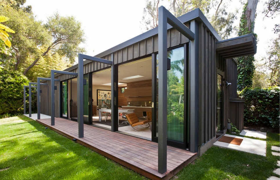 Использование современных стройматериалов. Для постройки выбирают стекло, металл, бетон, ценные породы дерева. Допускается применение камня, полимеров и кирпича.