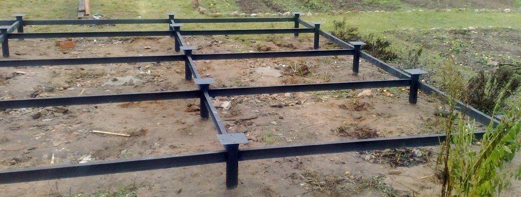 Ввинченные сваи обрезаются по одному горизонтальному уровню и соединяются между собой с помощью швеллера или двутавровой балки. Бытовка устанавливается на сваренный ростверк и фиксируется при помощи сварки или болтов.