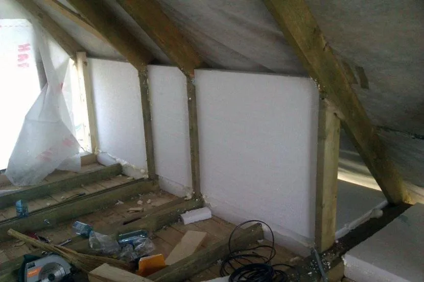 Если пенопласт старого образца был опасен своей горючестью, то в настоящее время выпускаются негорючие виды этого материала. Он достаточно дешев и в плане экологичности не будет представлять большой опасности, поскольку чердачное помещение в данном случае будет нежилым.