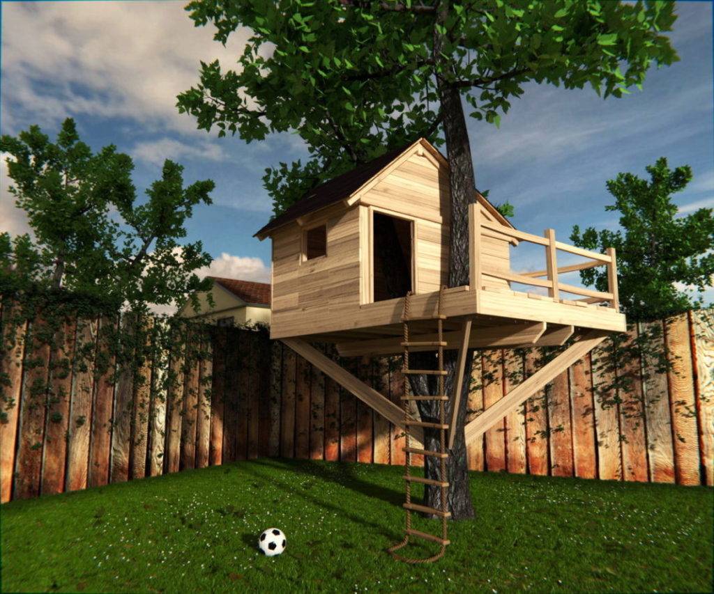 Домик на дереве – мечта любого ребенка. С точки зрения архитектуры самый сложный вариант детского домика. Для его постройки на участке должно быть крепкой дерево с сильным стволом, которое станет опорой, а также основной несущей конструкцией.