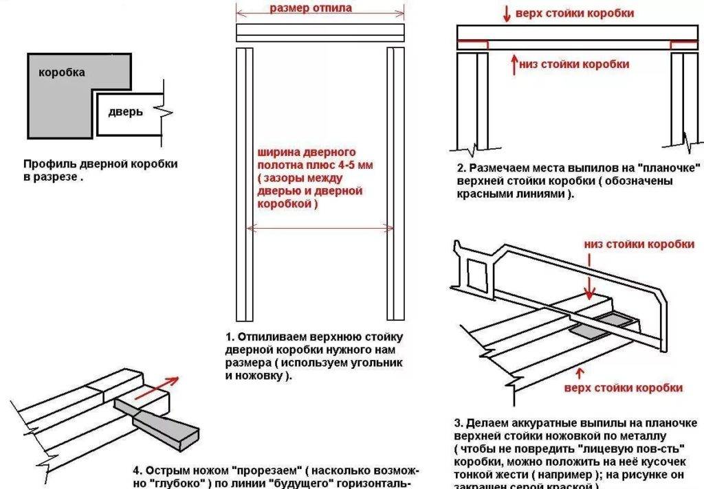 На первом этапе сборки дверной коробки нужно поработать пилой и стамесками