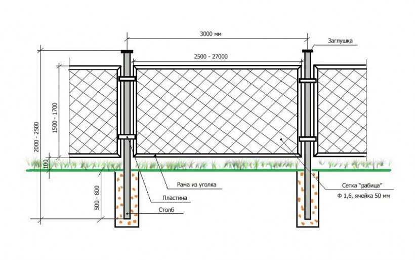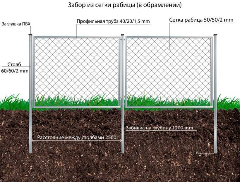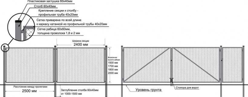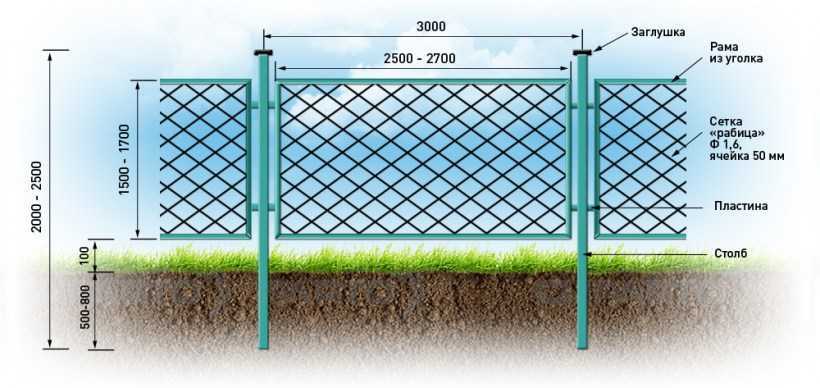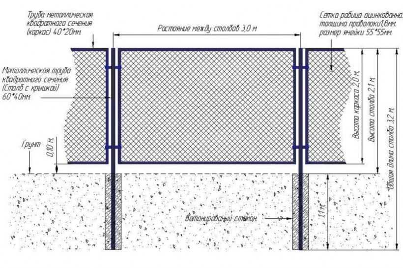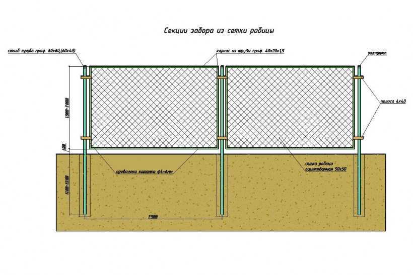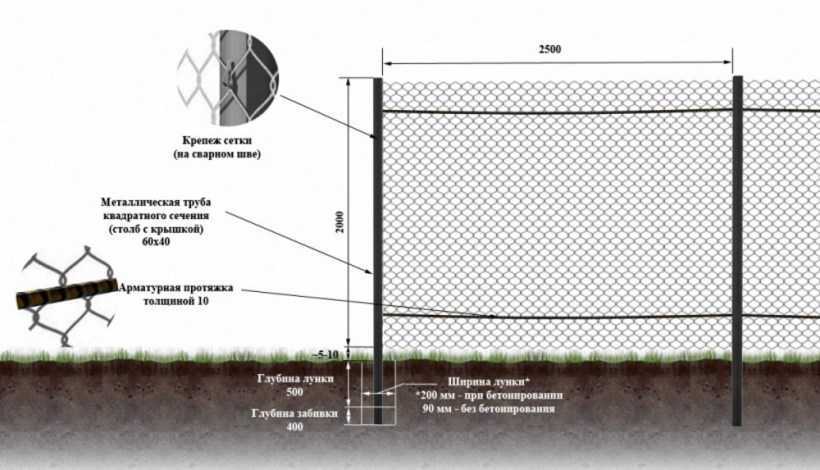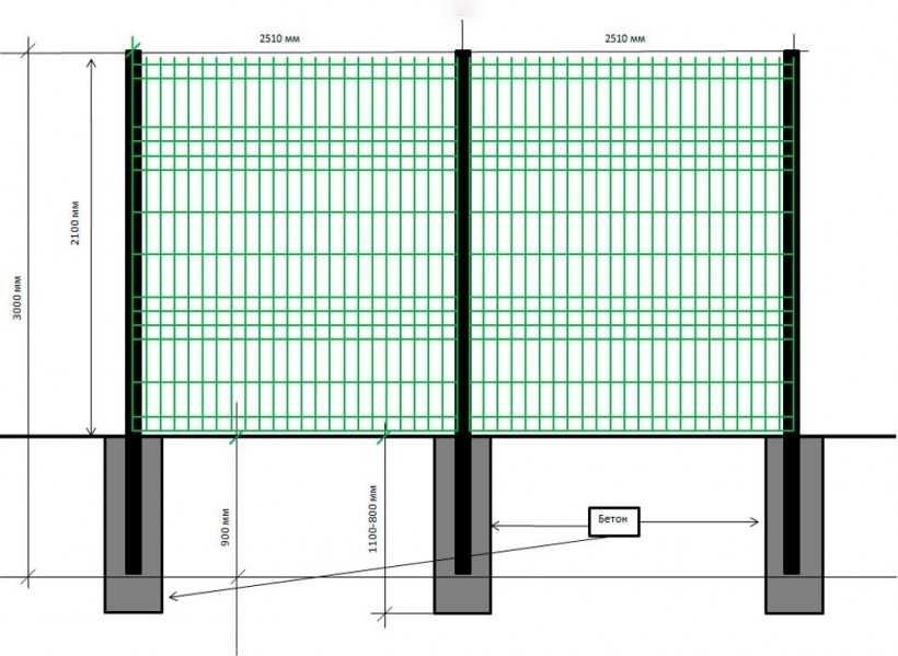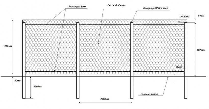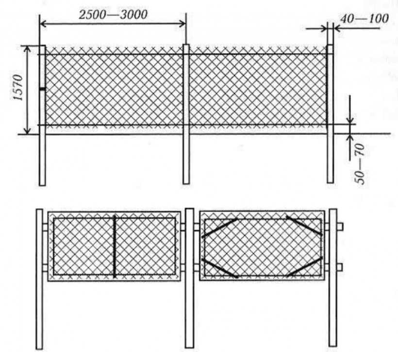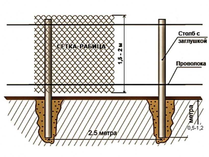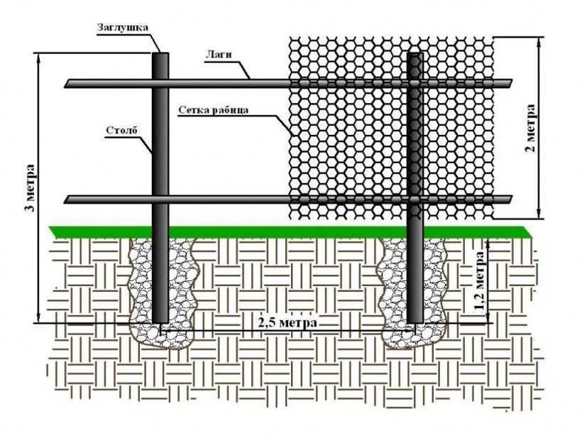 - оптимальное расстояние между опорами – 2,5 м при высоте изгороди до 200 см;