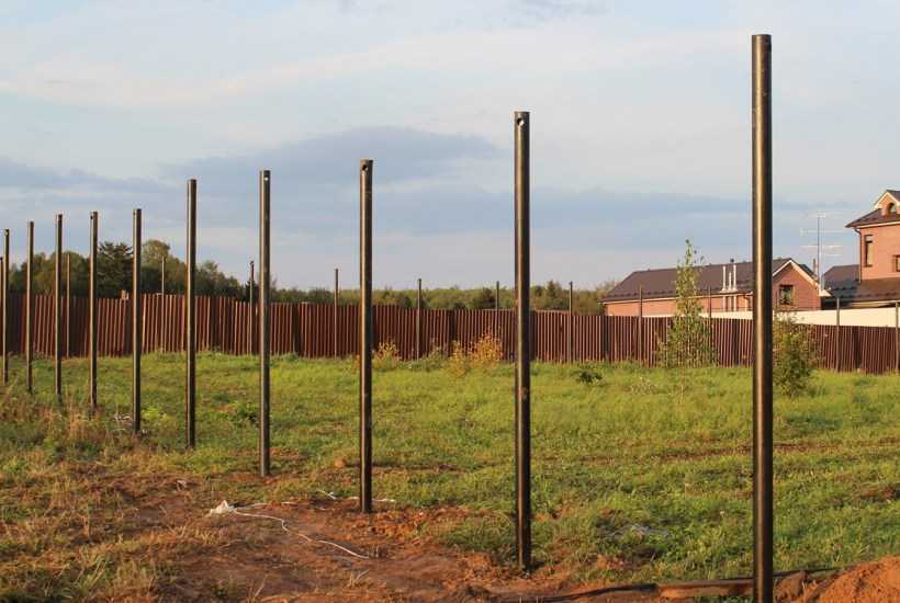 - Определить шаг между столбами. Если они из дерева, бетона, то дистанция в среднем составляет 3 метра, для металлических ‒ не более 2,5 метра.