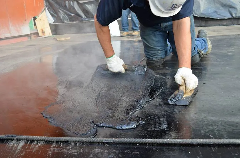 После этого производится наклейка материала. Делают его с помощью полимерно-битумных или резиново-битумных мастик. Битум приходится размягчать от 40 до 250 градусов. Это будет зависеть от количества используемого материала.