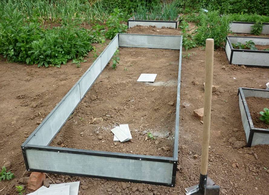 Независимо от вида листы сначала вкапывают в грунт. Самой маленькой считается глубина траншеи в 20 см. Она может быть и больше. Все зависит от высоты бортов.