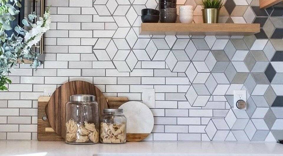 Если все-таки у вас нет возможности потратиться на дорогую плитку для фартука, обратитесь к необычным способам раскладки бюджетной плитки. К примеру, из недорогой мозаики разных цветов можно создавать не очень сложные, но эффектные узоры.