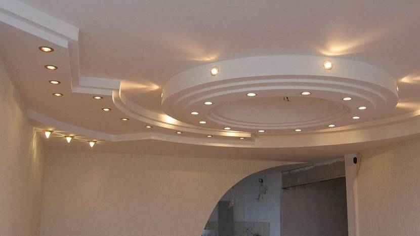 Гипсокартонный подвесной потолок в каркасном домеИсточник m2remonta.ru
