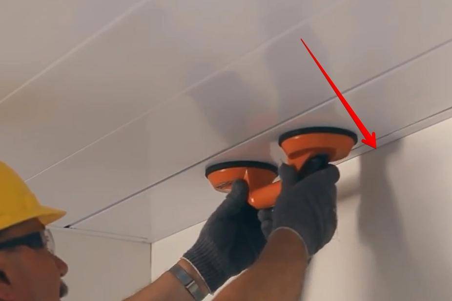 В процессе установки панели задвигаются между плинтусом и крепежным молдингом, при этом по центру их следует выровнять. Крепление панелей к рейкам обрешетки проводится посредством саморезов с пресс-шайбой. Следующие панели легко вставляются в паз предыдущих и крепятся к обрешетке. После этого необходимо при помощи дрели сделать в панелях отверстия для выведения провода освещения.