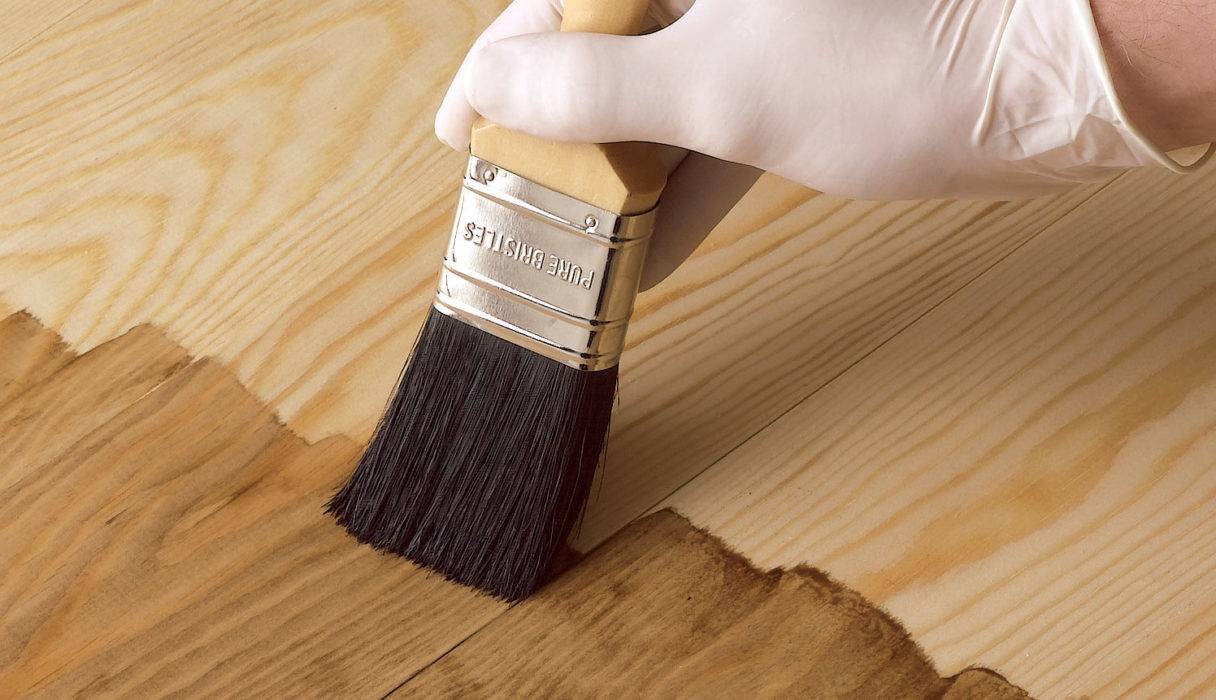 Перед началом тонирования дерева все необрабатываемые поверхности нужно покрыть пленкой либо их края обклеить малярным скотчем. Техника обработки дерева морилкой почти не отличается от обычной покраски