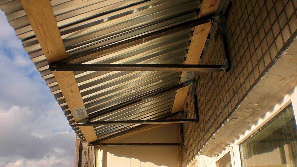 Обшить балкон крашеным профнастилом также просто, как и виниловым сайдингом. Даже ещё легче, особенно при наличии помощника. Каркас для этого типа обшивки выполняется точно по такому же принципу, что и в случае с виниловым сайдингом. Достигнуть прочности нового основания можно при помощи проволоки или специальных оцинкованных хомутов, которыми крепятся деревянные бруски.